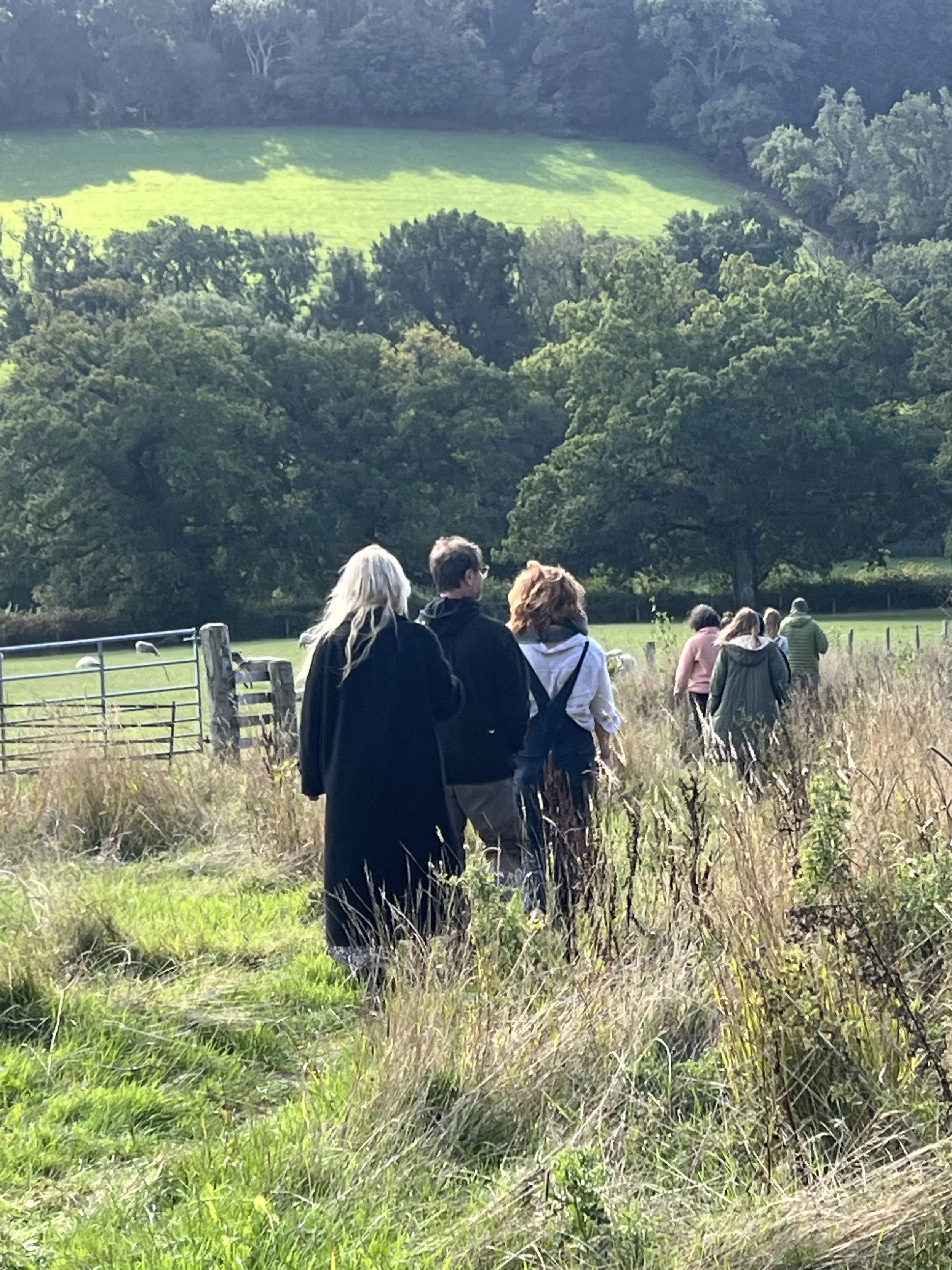 I returned from Devon feeling renewed, carrying the green hills and orchards with me—the sound of owls at night and the faint scent of woodsmoke lingering on my sweater. The Lessons in Listening residency with the Land Art Agency arrived at the perfect moment, each day shaped by the hills, the wind, and conversations that stretched beyond words. I’m also deeply grateful to On The Hill for their community farm and creative spaces.