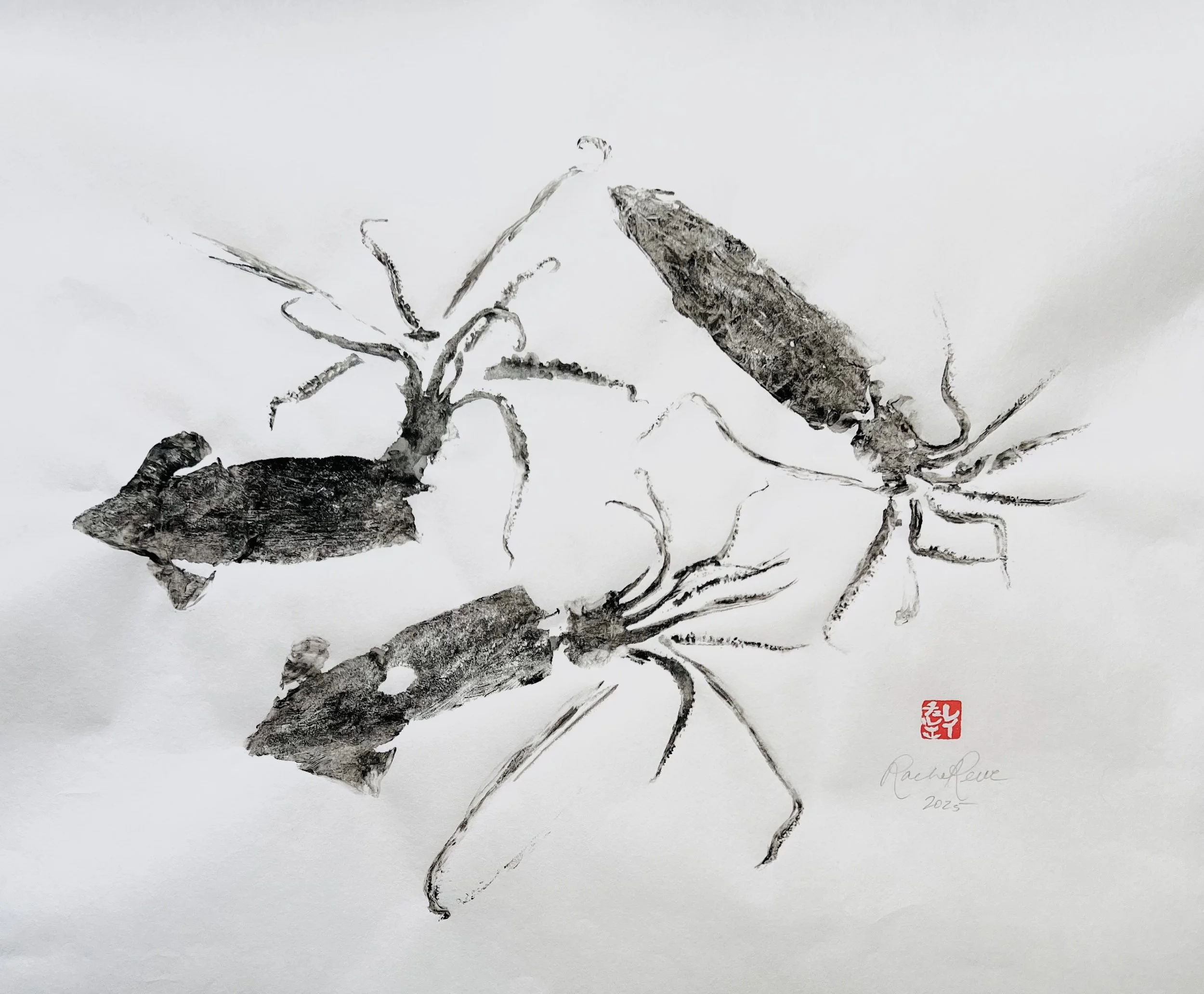 $50 Atlantic Lobster Claws on Washi 9" x 9"